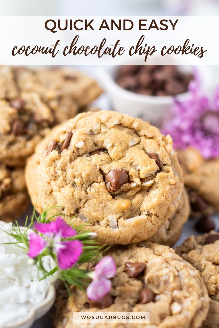 Coconut is a well loved ingredient in the two sugar bugs household. Coconut cake is my birthday request every year and coconut cream pie has been known to be our Easter dessert. It only seemed fitting to combine coconut with the classic chocolate chip cookie!