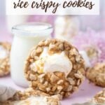 Rice crispy cookies are soft, chewy and stuffed with a large marshmallow. Loaded with Rice Krispies and baked to have an extra gooey center. Easy to make with cold ingredients and they need no chill time. This recipe makes 14 large cookies in about 30 minutes.